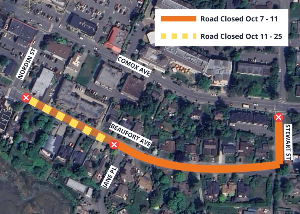 - October 7 – October 11: The intersection of Beaufort Avenue and Jane Place will be closed from Monday, October 7 and is estimated to last until Friday, October 11, 2024 to accommodate the installation of two large valve chambers. Beaufort Avenue will be closed from Stewart Street to Nordin Street (MAP 1).