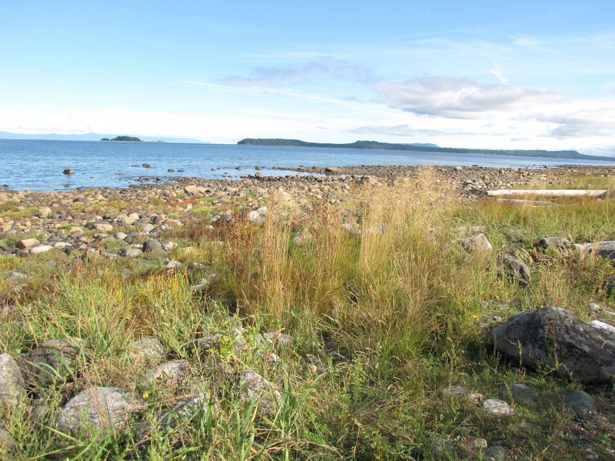 This Harby Road beach access features a native tread, narrow trail to a rocky beach.